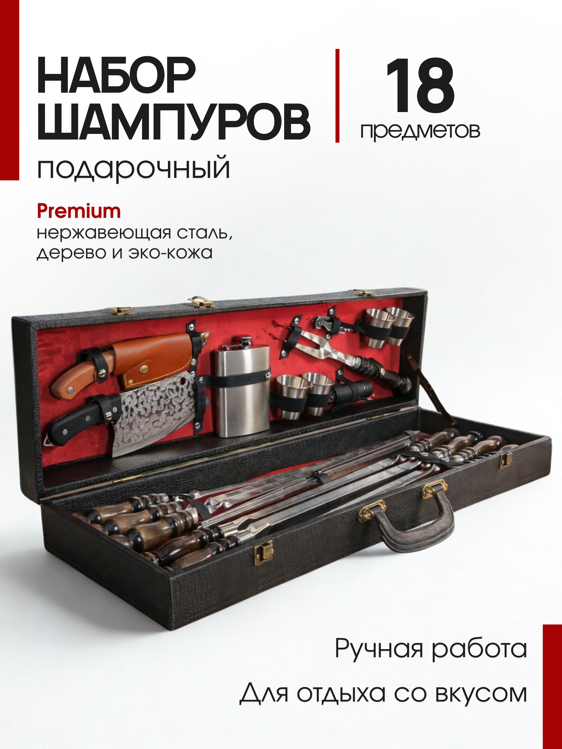 Набор шампуров в кейсе кож/зам "ТИГР" №125